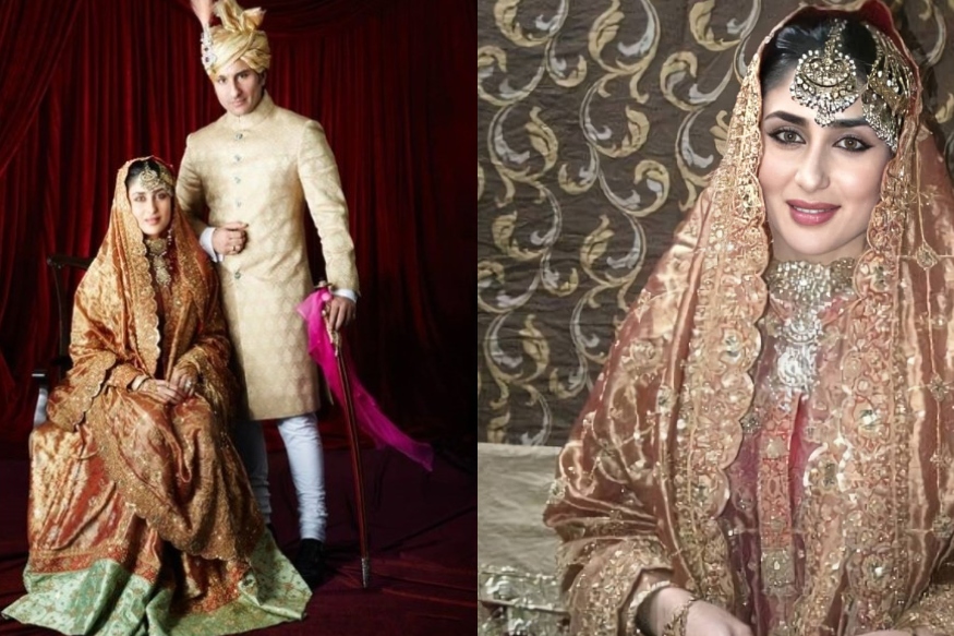 डिजाइनर रितु कुमार ने सात साल पहले सैफ और करीना की शादी के लिए हीरलूम शारारा को फिर से बनाया। अपनी शादी के लिए करीना कपूर खान के शाही लुक को मंगा टिक्का, पासा और चोकोर ने पूरा किया।